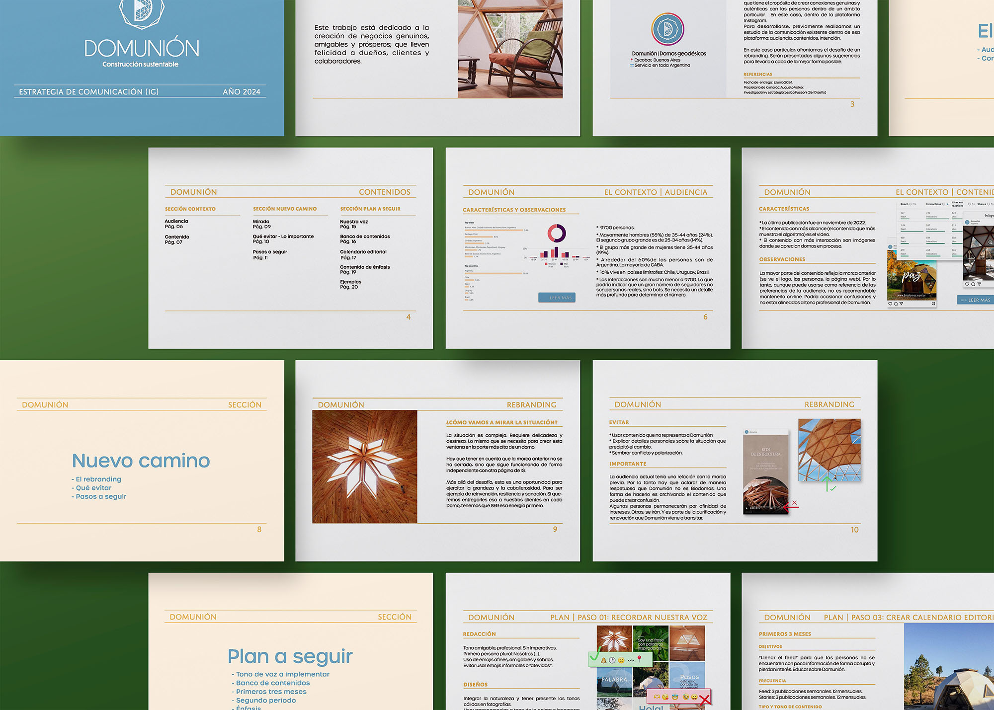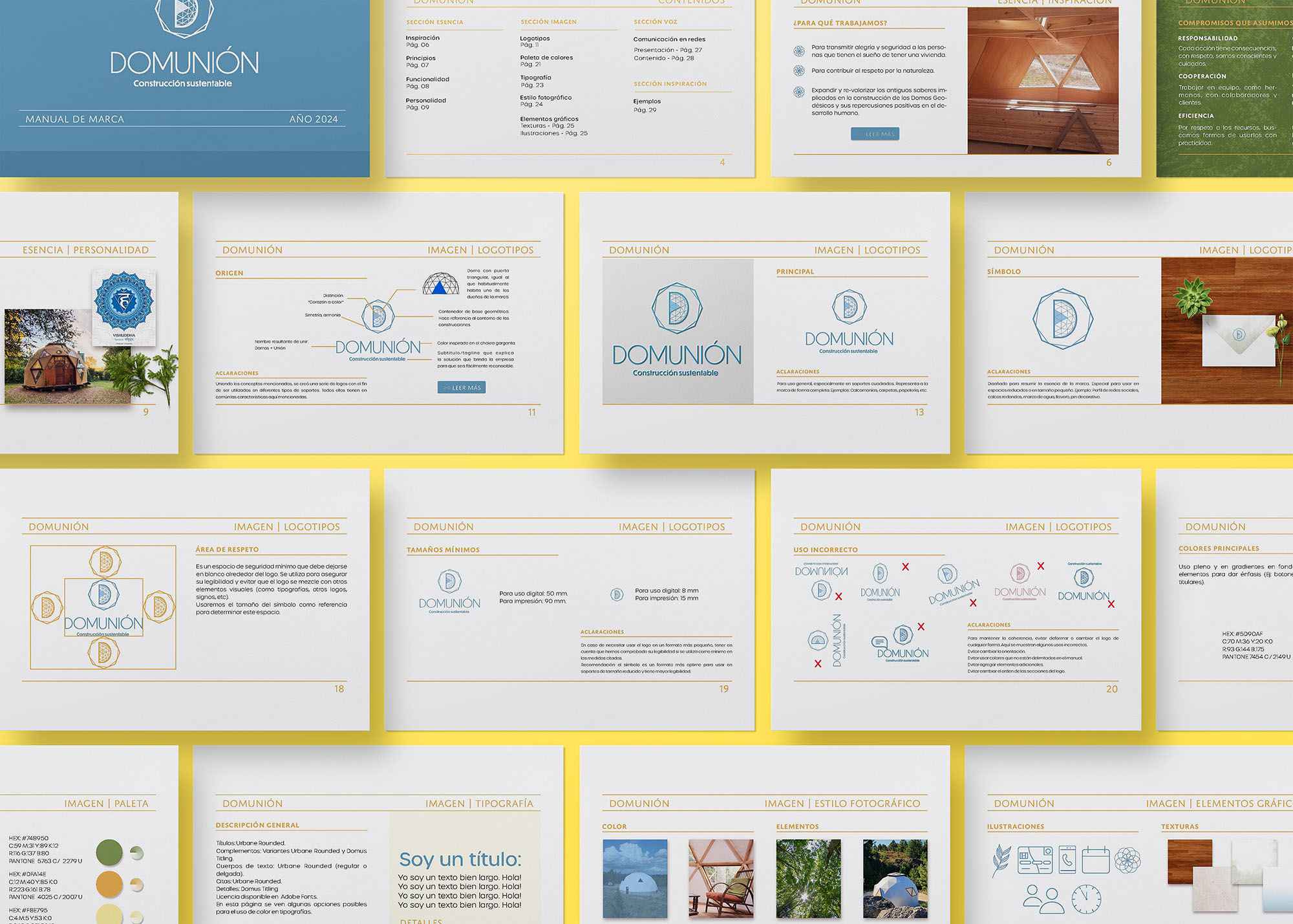 El sistema de trabajo de la empresa se caracteriza por su calidez, cercanía y profesionalismo. Para reflejar estos valores, se optó por una paleta de colores vibrantes, una tipografía minimalista y amigable y formas geométricas que dialogan con el universo visual de los domos.
